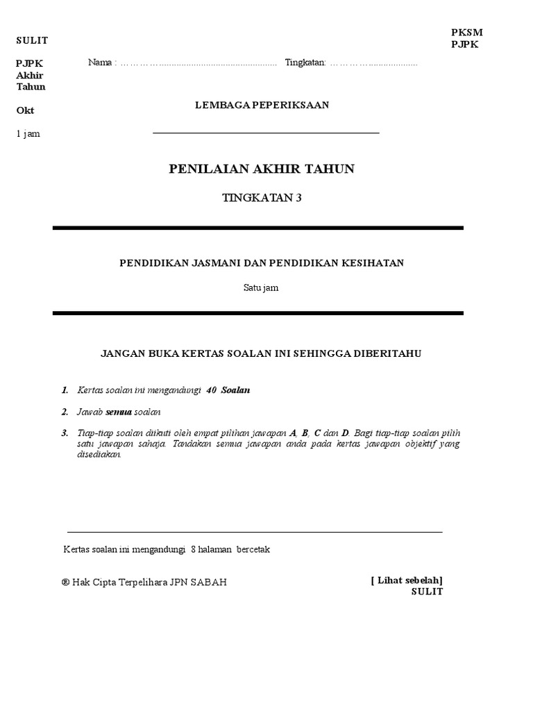 Latihan Pengukuhan Pjpk Tingkatan 3 Exercise